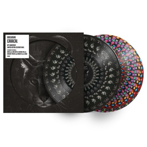 영국의 게라지/일렉트로닉 듀오 Disclosure의 2015년 2번째 정규 앨범 Caracal [10th Anniversary][Gatefold][Zoetrope 2LP]! 2013년 데뷰 앨범 [Settle]이 이어 영국 앨범차트 1위에 올랐으며 영국에서 골드를 기록했다. The Weeknd, Sam Smith, Gregory Porter, Lorde등의 스타들이 대거 피처링했으며 싱글 'Magnets', 'Omen', 'Holding On'등이 히트했다. 본 LP반은 2015년 디럭스반에 수록되었던 15곡을 모두 수록하고 있다.